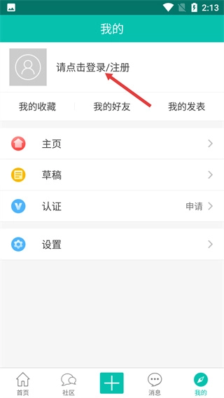 进入“我的”页面后,找到并点击“请点击登录/注册”这一选项,即可进入账号登录的操作界面。