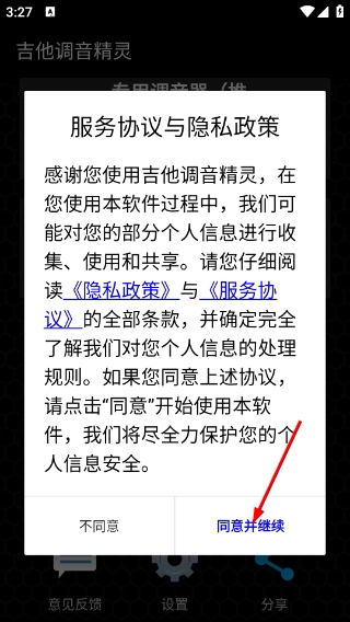 在使用本软件之前,请务必阅读【服务协议】与【隐私政策】。当你确认已充分理解相关内容后,需点击【同意并继续】按钮,这是进入软件的必要前置步骤。