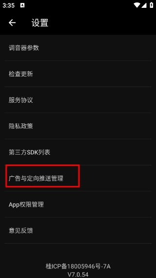 进入设置页面后,找到并选择【广告与定向推送管理】这一选项,点击它就能进入对应的广告设置界面。