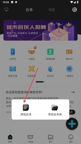 1、在台本页点“+”,选【添加台本】。
