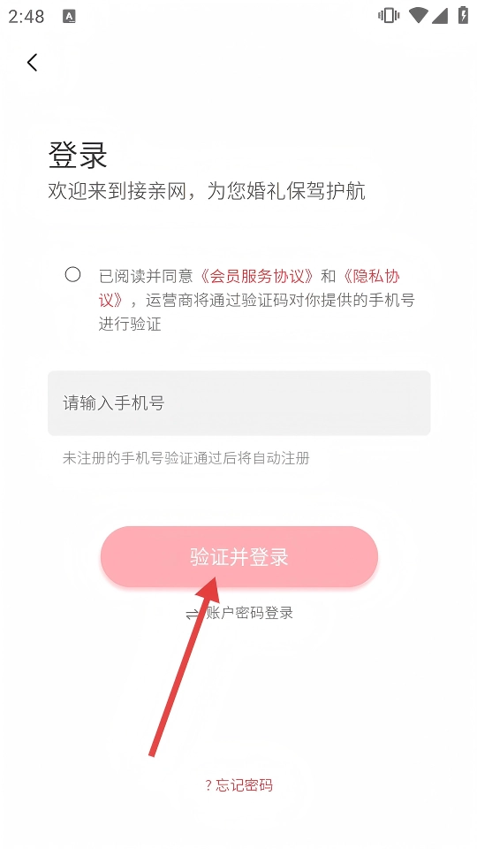 在登录页面输入手机号后,点击【验证并登录】按钮即可完成预订流程。