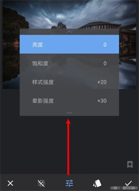 你可以通过上下滑动屏幕,或者点击下方侧边栏中间的参数编辑菜单,来调出编辑界面。之后选择你想要调整的项目,再左右滑动就能改变对应的参数值了。