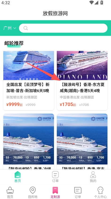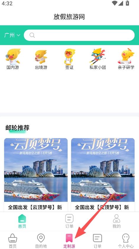 打开软件,选择定制游,进入旅游产品页面。