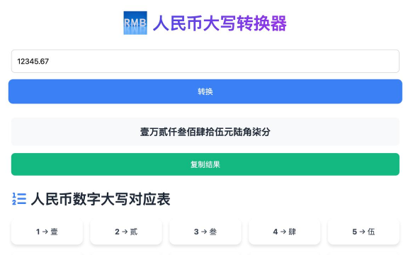 大写转换是一款用于数字大小写转换的工具,用户只需输入任意数字,就能迅速得到对应的大写形式。它不仅能帮助用户加深对相关知识的理解,对于常办理结算业务的工作人员而言,更是实用的工具选择。其操作方式简单便捷,如同使用计算器一般,能有效提升用户的工作效率。