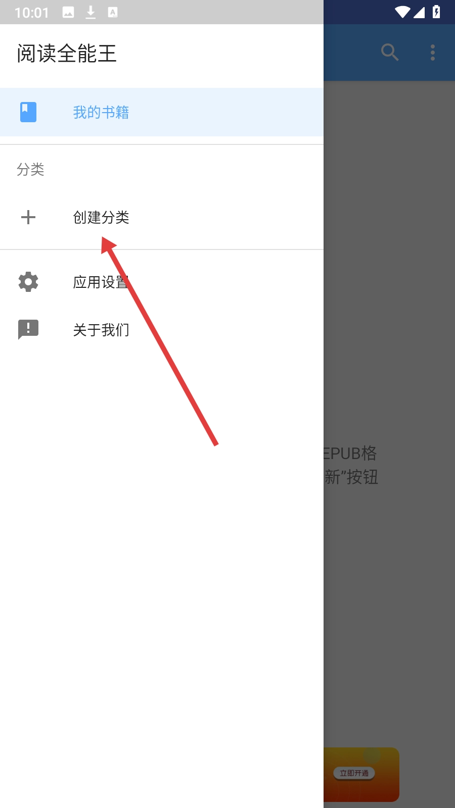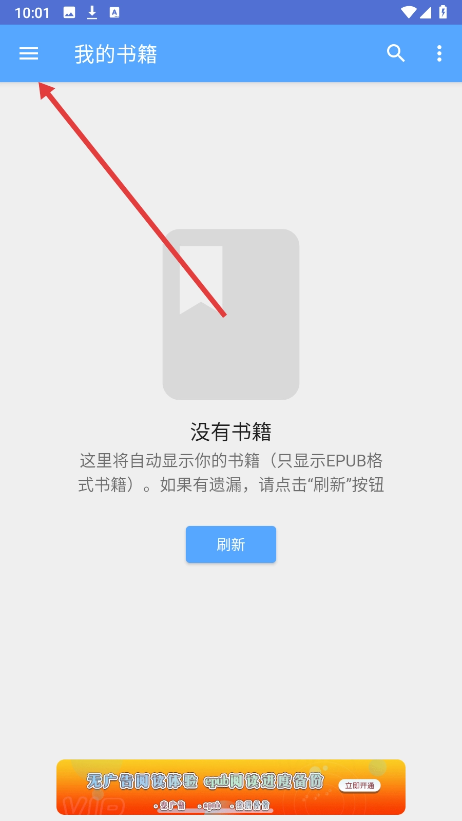 1、进入【我的书籍】页面后,点击左上角的图标,展开功能菜单。