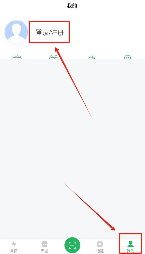 1、点开应用后先找到右下角的我的页面,没账号的需要先注册,有账号的直接点击登录按钮。