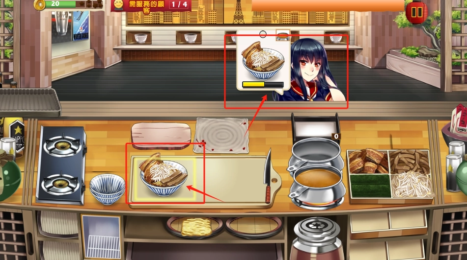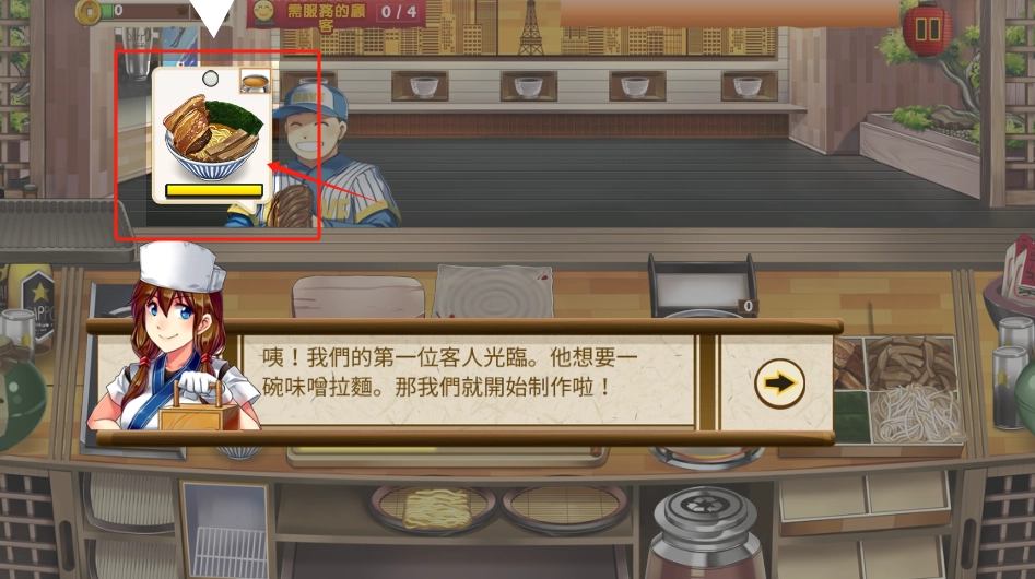 2、按照客人要求,点击味噌拉面图标开始制作。