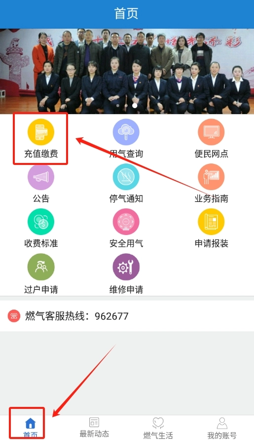 2、登录成功返回首页,一眼就能瞧见 “充值缴费” 选项,直接点击进入缴费页面。