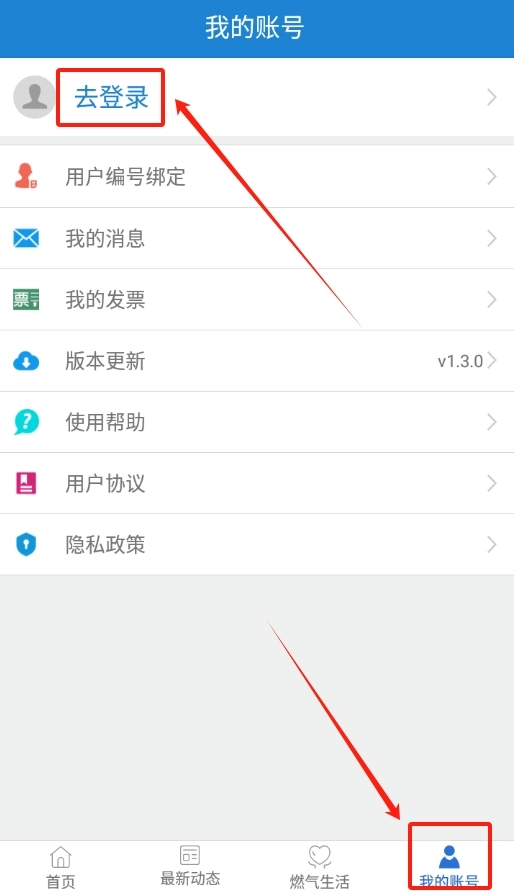 1、软件安装标准流程:在应用市场搜索广元燃气,安装完成后进行注册并登录个人账号。