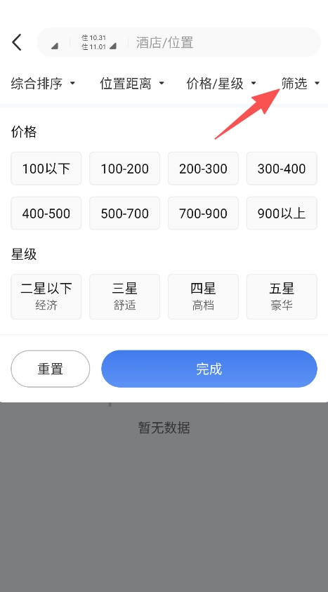 进入筛选页面,选定价格范围和酒店星级,就能精准锁定目标酒店。