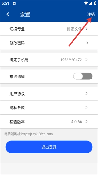 在设置页面中,点击【注销】选项,即可进入账号注销的流程界面。