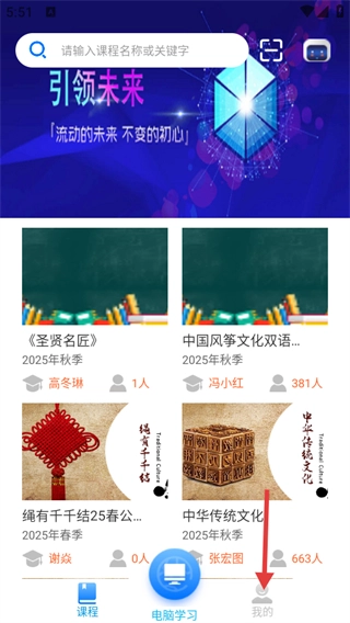 在课程页面底部点击【我的】选项,就能进入个人中心界面。
