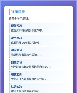 支持学生从课前预习到课后复习的全流程学习,为他们规划完整的学习路径,助力构建系统化的知识体系并把握学习节奏。