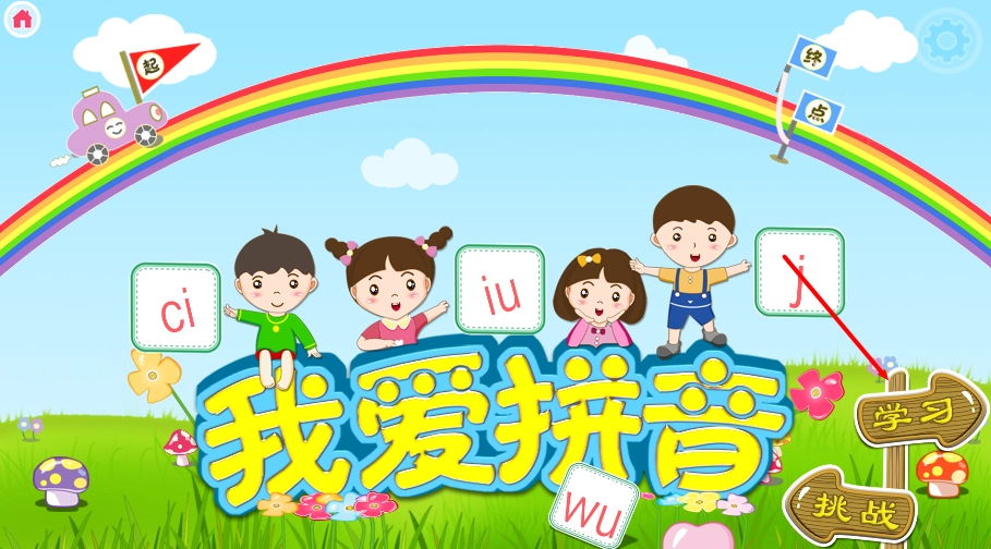 打开已安装完成的《我爱拼音》应用,接着点击首页的“学习”按钮,即可进入学习界面。