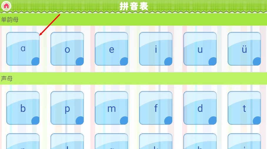 在学习页面里,你可以从拼音表入手挑选学习内容,进而查看声母、韵母以及整体认读音节。