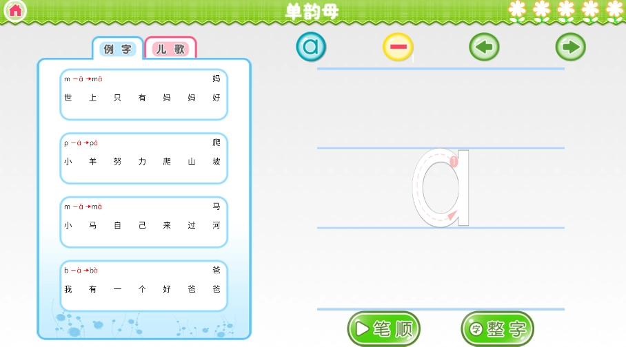 支持将声母、韵母、整体认读音节进行分段式学习,搭配发音播放功能与拼读练习环节,助力构建标准的语音体系。
