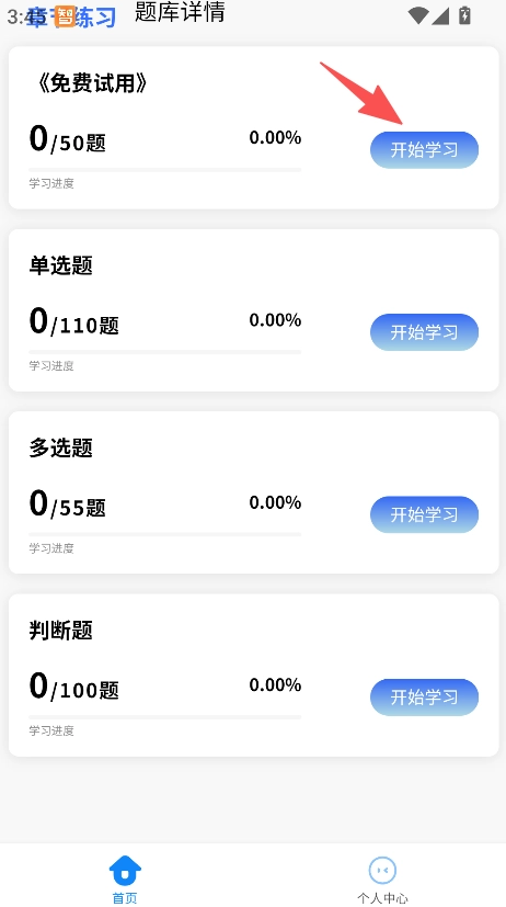 题型分类清晰明确,免费试用、单选题等板块一目了然,能快速定位练习内容,让碳排放管理员考试备考操作更加高效。