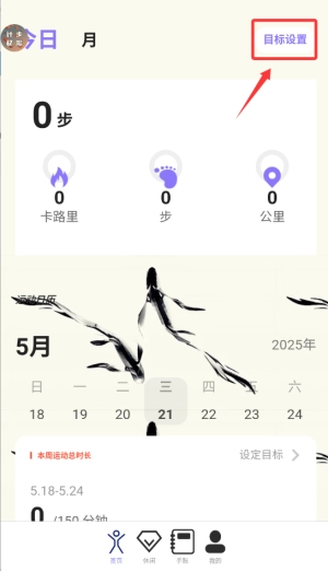 1、启动应用后,在首页选择"目标管理"功能进入步数计划页面。
