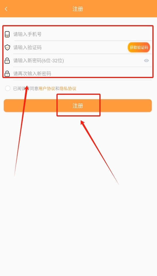 3、新用户注册时,需先输入手机号获取验证码,接着填写收到的验证码,最后设置密码,这样就能完成账号注册流程了。