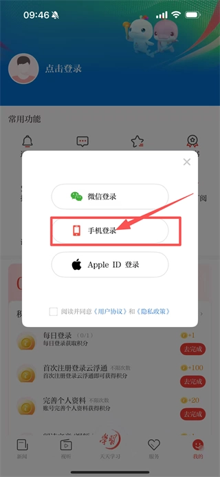 在登录方式选择弹窗中,选择手机登录选项,即可进入手机号登录页面。