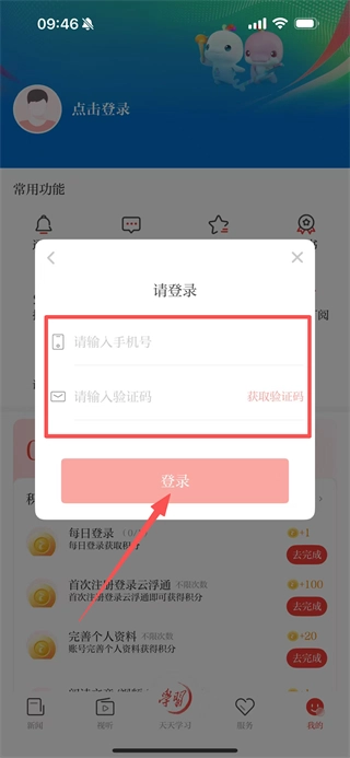 在手机号登录的页面上,输入手机号与验证码,接着点击登录按钮,就能完成登录的操作。