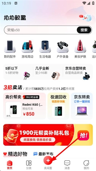 在首页点击底部的“卖闲置”按钮,页面会弹出选择卖闲置方式的弹窗。