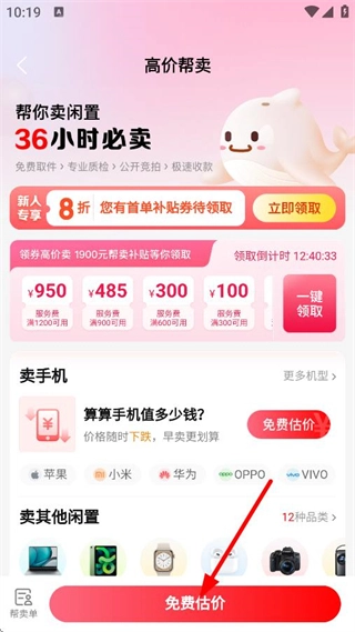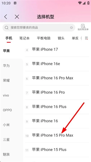 在高价帮卖页面,点击免费估价,进入选择机型页面。