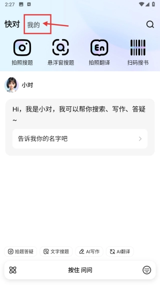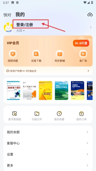 打开学习类应用的首页,点击顶部的“我的”选项,即可进入个人页面。