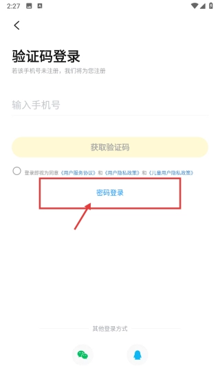 在登录选择界面,点击密码登录的选项,就能进入密码登录页面。