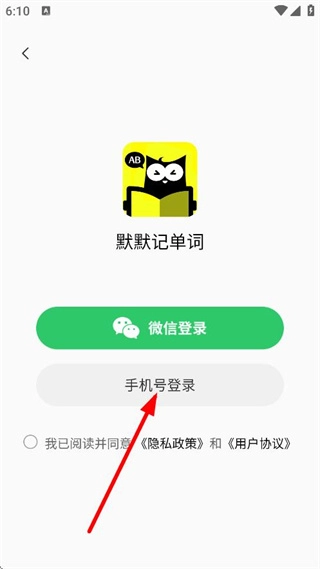 3、在登录选项页面,点击手机号登录选项,进入手机号登录界面。