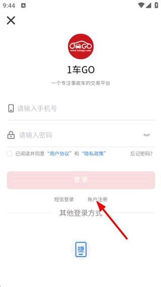3、在登录界面,点击账户注册选项,可进入注册页面。