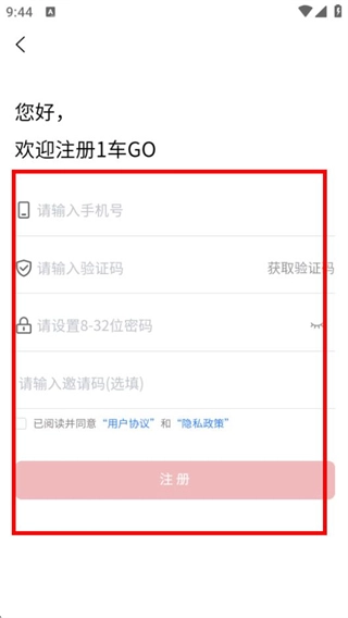 4、在注册页面,依次填写信息并勾选协议后,点击注册即可完成注册。