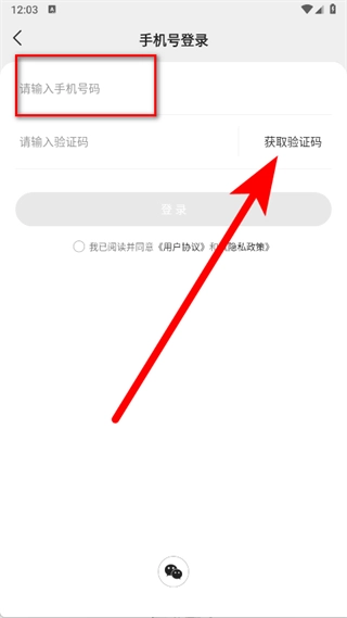 3、进入手机号码登录页面后,在对应的输入框内填写手机号,接着点击“获取验证码”按钮。