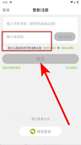 4、输入收到的验证码,勾选相关选项后,点击登录按钮,即可完成注册登录流程。