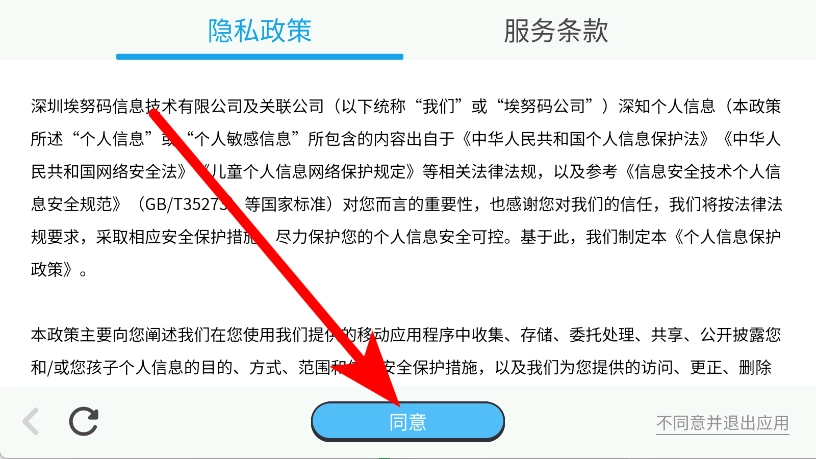 1、打开都都思维,在展示隐私政策的页面中,点击下方的同意按钮。