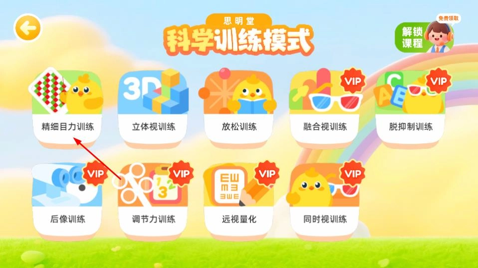 2、在科学训练模式的选择界面,点击精细目力训练选项,即可进入训练游戏的选择页面。