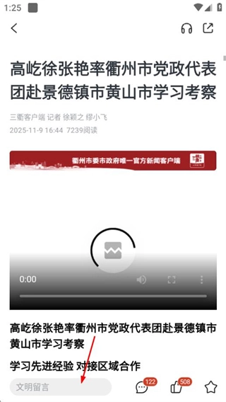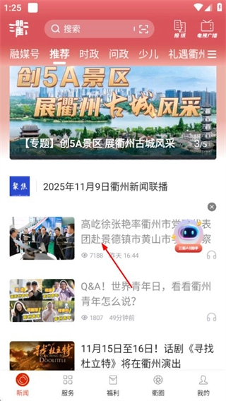 1、在三衢首页,点击感兴趣的新闻,进入新闻详情页面。