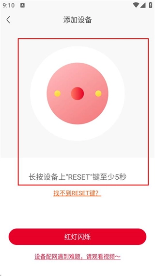 4、进入配网页面后,根据提示长按设备的RESET键,就能完成设备添加操作。