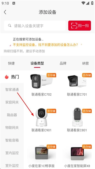 3、进入添加设备页面后,挑选目标设备,接着进入设备配网的准备页面。