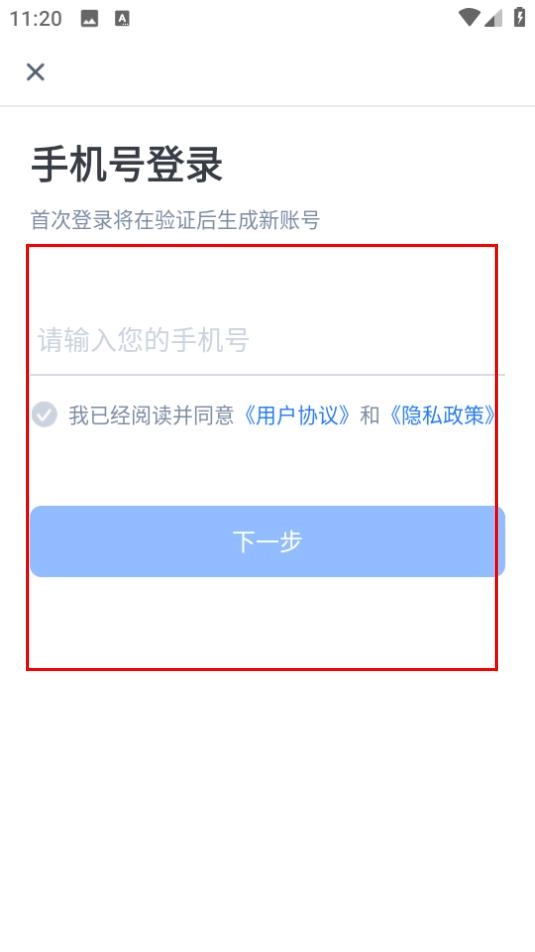 4、进入手机号登录页面,填写相关信息并勾选协议,点击“下一步”按钮完成登录操作后,开展测试工作。