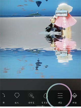 4、达成水面倒影的呈现效果,可依据实际场景需求对模糊程度、色彩调配、呈现样式等各项参数进行调整,设置完毕后点击对勾确认即可。