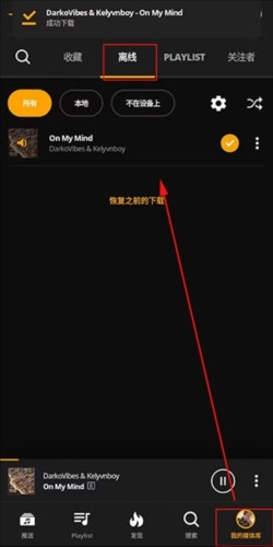 接下来进入“我的媒体库”,找到“离线”栏目,就能查看刚才缓存好的音乐了。