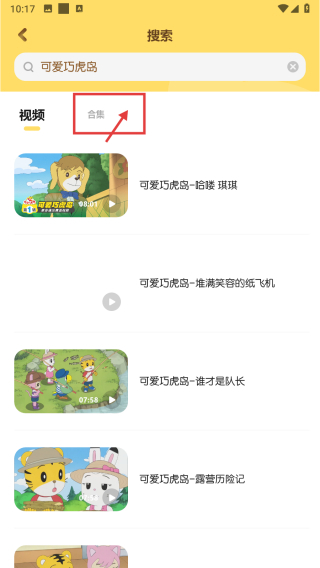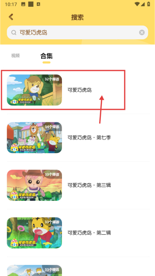 4、进入视频合集列表页面后,找到并点击可爱巧虎岛”的合集条目,即可查看该系列的视频合集内容。