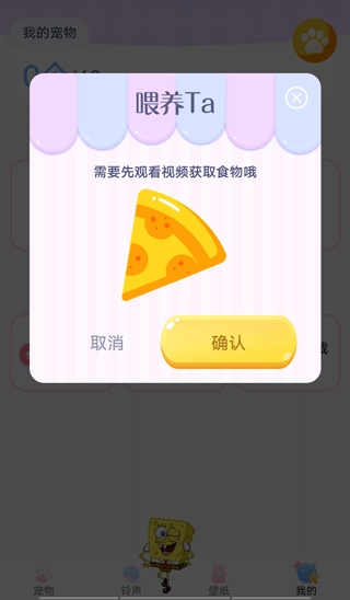 当宠物头顶显示“饿死了我饿了”的提示时,就意味着宠物该吃东西了。