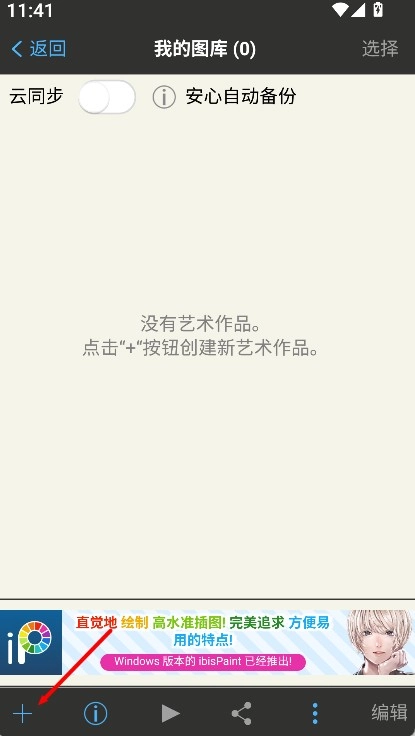 2、点击左下角的“+”号,可以添加新的艺术作品,用于开启独立的画布进行绘制。