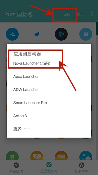 在手机里安装pure轻雨图标包,同时也装上你挑选的启动器,比如Nova Launcher。