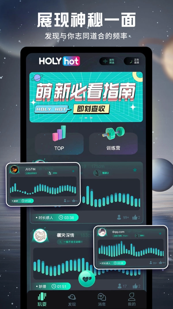 不管是日常上班通勤途中,还是夜晚空闲放松的时刻,你都能不受约束地使用HOLY HOT。来这里寻找拥有特定标签的同好群体吧!