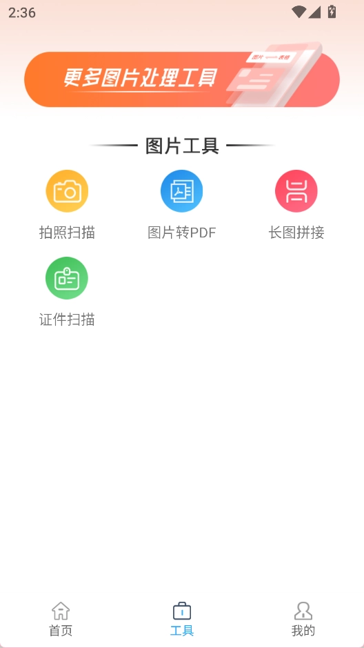 在工具界面选择拍照扫描功能