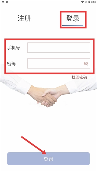 在登录页面,先填写【手机号】,接着填写【密码】,等信息都输入完毕后,点击【登录】按钮,就能进入应用的主界面了。