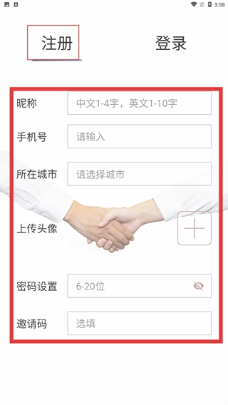 在注册页面,填写【昵称】【手机号】等信息,选择所在城市、上传头像并设置密码后,即可完成账号注册流程。